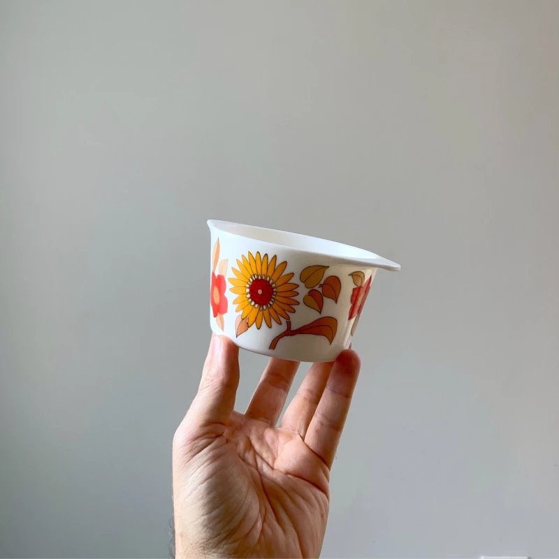 Bol avec oreille modèle Tournesol édité par Tefal dans les années 70. Parfait pour du camping vintage !