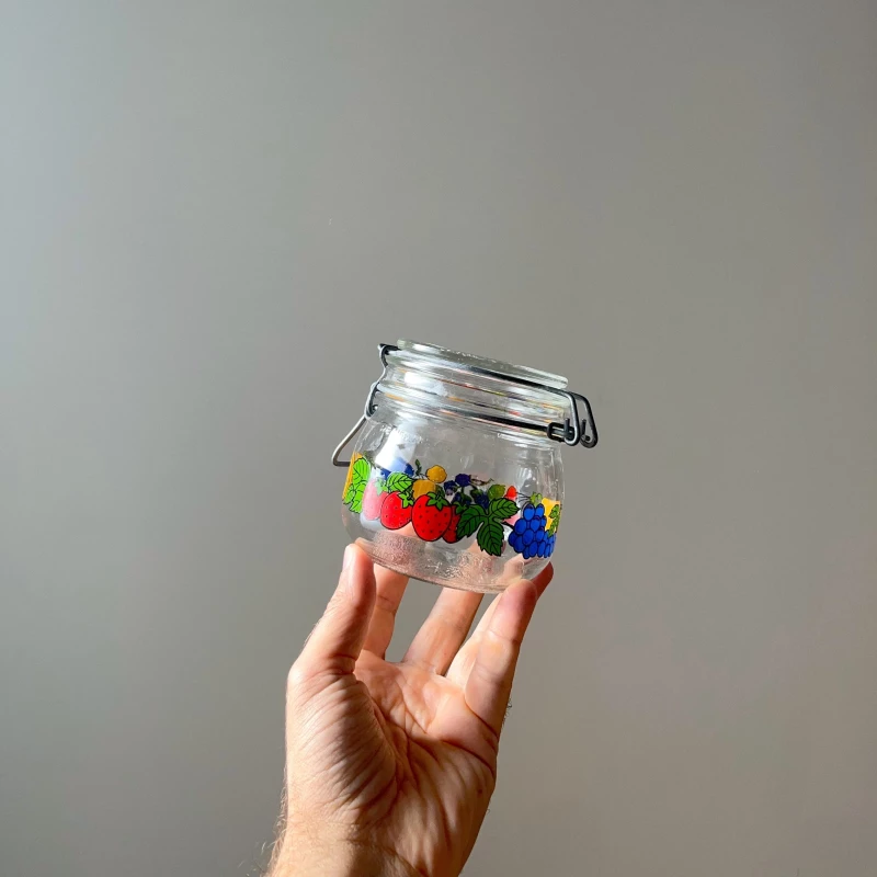 Bocal Le Parfait Lever 1/2L avec son décor de fruits en très bel état.