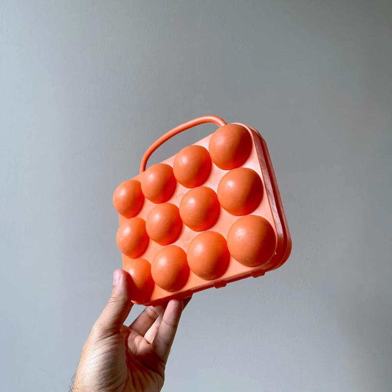 Boite à 12 œufs vintage Pola de différentes couleurs.