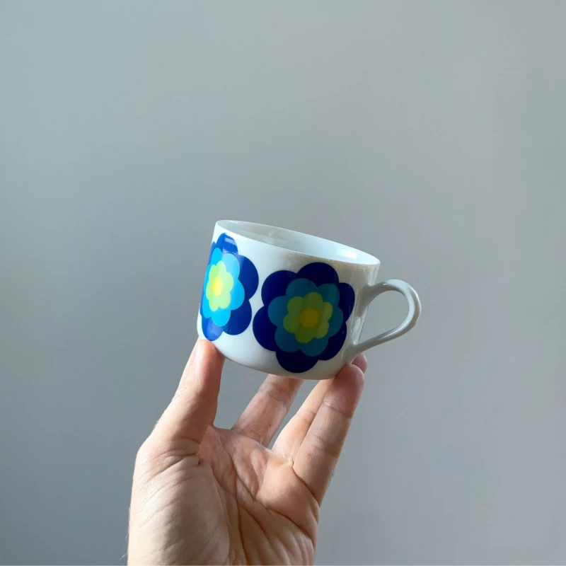 Magnifique tasse en porcelaine avec ses grandes fleurs typiquement vintage !