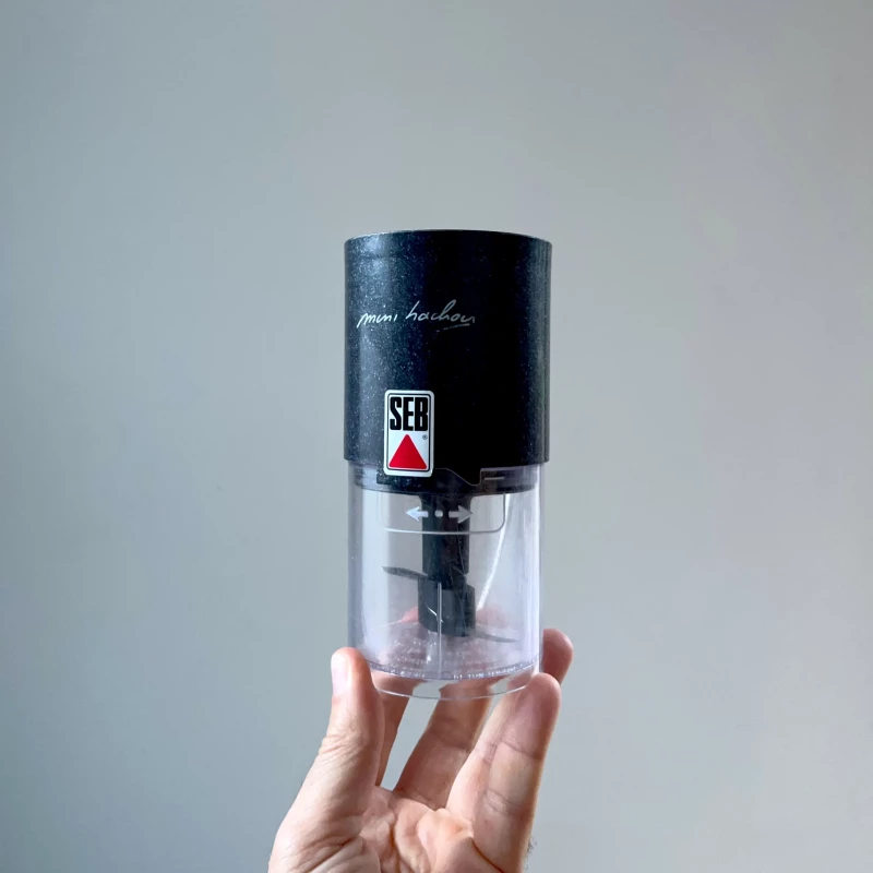 Ancien hachoir électrique SEB des années 70 noir à paillettes lors d'une édition spéciale.