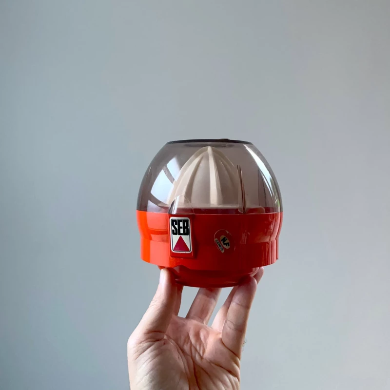 Ancien presse agrume électrique SEB avec son couvercle qui se transforme en réservoir. Avec boite d'origine.