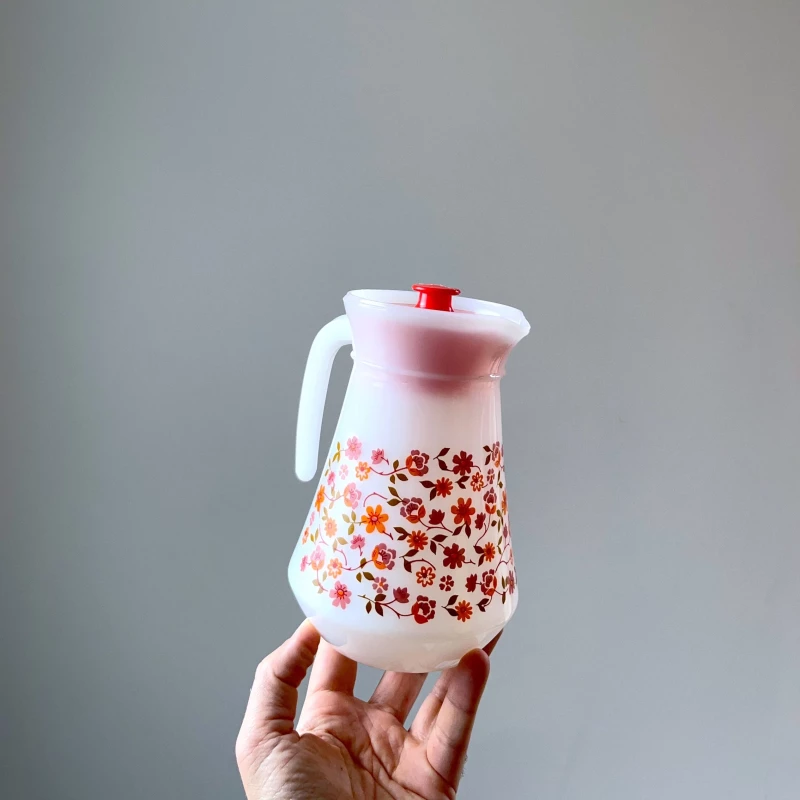 Pichet ou verseuse Arcopal avec son motif Scania. Modèle rare avec son lizeret au niveau du haut de le anse.