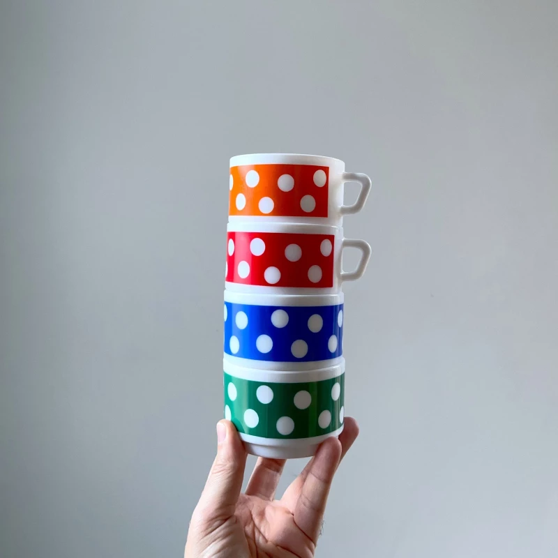 Belle tasse à chocolat (90mm) éditée par Arcopal dans les années 70 de la collection Coccinelle (aussi appelé Polka).