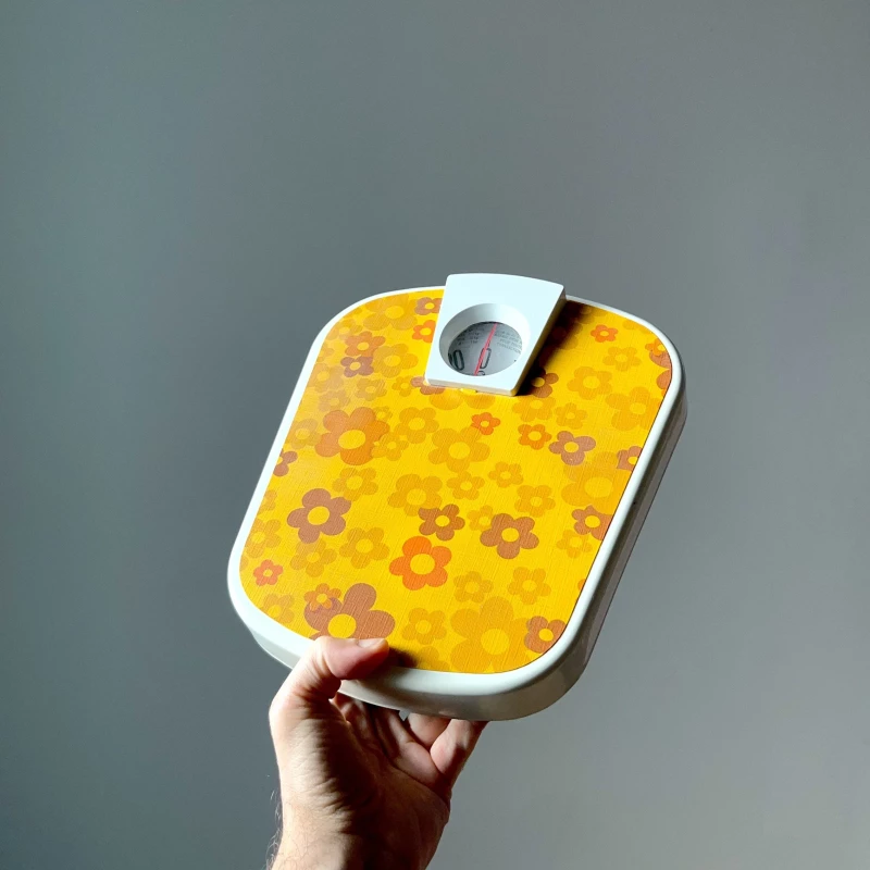 Beau pèse personne Soehnle avec ses fleurs en bel état. Pour une touche de vintage dans la salle de bain !